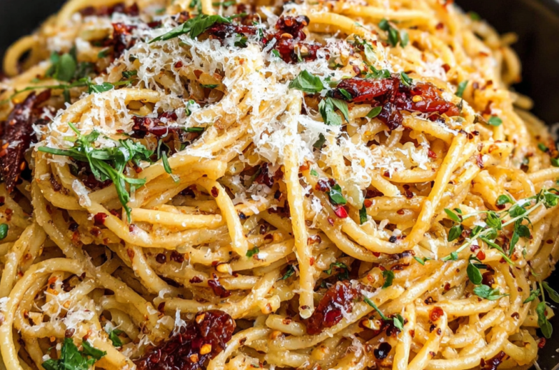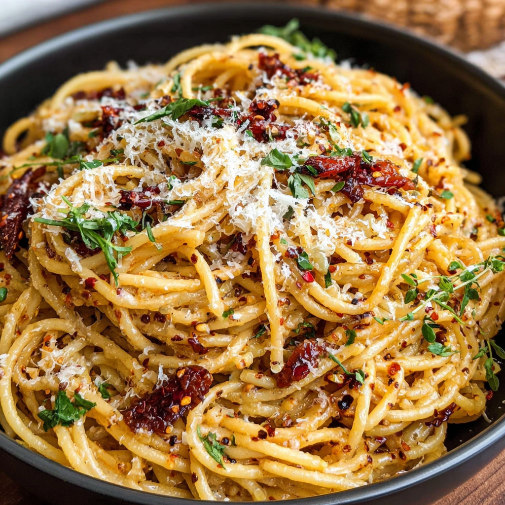 Dieses Gericht zeigt, wie einfache Zutaten harmonisch zusammenpassen können. Die karamellisierten Zwiebeln und das Chiliöl machen Pasta zu einem unvergesslichen Erlebnis.
