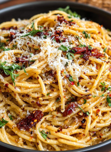 Pasta mit karamellisierten Zwiebeln und Chiliöl