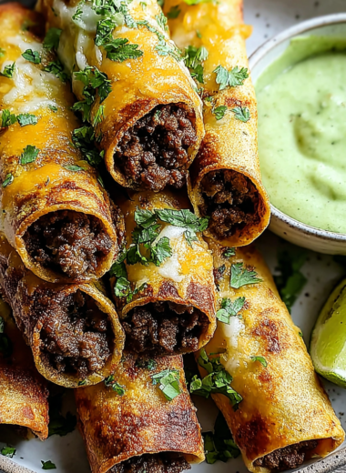 Rindfleisch-Flautas mit Koriander-Avocado-Sauce